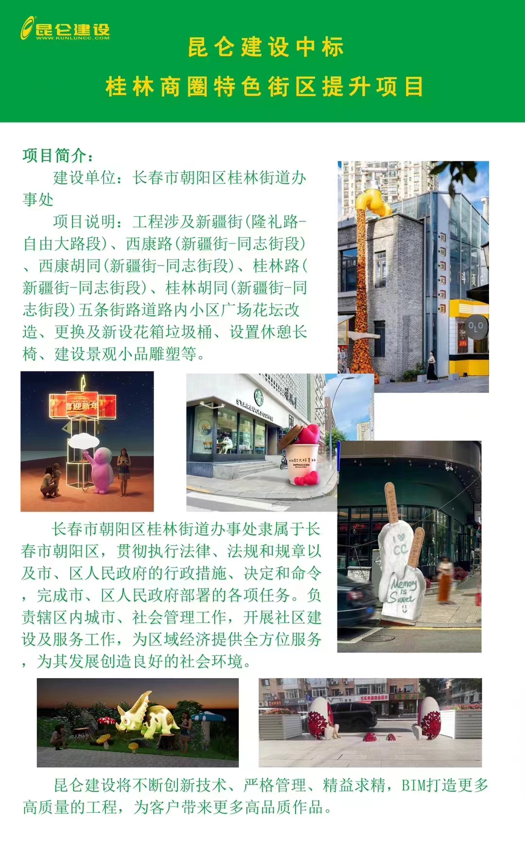 近日,長(zhǎng)春市公共資源交易平臺(tái)發(fā)布長(zhǎng)春市朝陽(yáng)區(qū)桂林商圈特色街區(qū)改造提升項(xiàng)目中標(biāo)公示,長(zhǎng)春昆侖建設(shè)股份有限公司(以下稱“昆侖建設(shè)”)成功中標(biāo)。